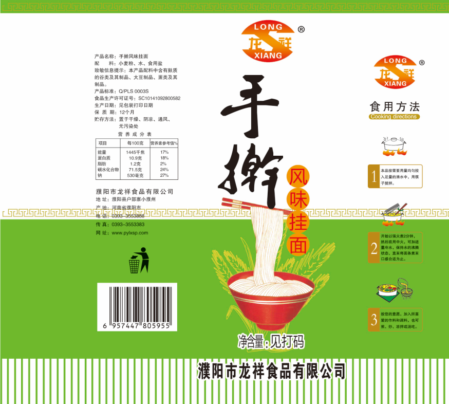 濮陽市龍祥食品有限公司位于河南省濮陽縣戶部寨鎮(zhèn)小濮州,始建于1994年,前期投資200萬元,經(jīng)過幾年的努力,大力開發(fā)市場,由于市場的需求量急劇上升,出現(xiàn)供不應(yīng)求,于2004年擴(kuò)建,建成一座新型的現(xiàn)代化面粉加工企業(yè),并擁有全國先進(jìn)全自動(dòng)生產(chǎn)設(shè)備一套,產(chǎn)量由以前的100噸/天,提高到現(xiàn)在400噸/天。 2012年再次擴(kuò)大規(guī)模申請為濮陽市龍祥食品有限公司,注冊資金500萬元。2012年又投資800萬元新建掛面生產(chǎn)線一條,日產(chǎn)掛面50噸。龍祥食品有限公司現(xiàn)有職工120余人,總工程師1人,專業(yè)技術(shù)人員10人,經(jīng)濟(jì)師1人,會計(jì)師1人,銷售人員2人,優(yōu)秀專業(yè)人員20余人。  龍祥公司自創(chuàng)建以來,社會效益十分可觀。公司一直以“今天的質(zhì)量,明天的市場”為信念,“一切為了客戶需求,竭誠追求完美品質(zhì)”為企業(yè)宗旨,走專業(yè)化經(jīng)營和職業(yè)化管理的路子。